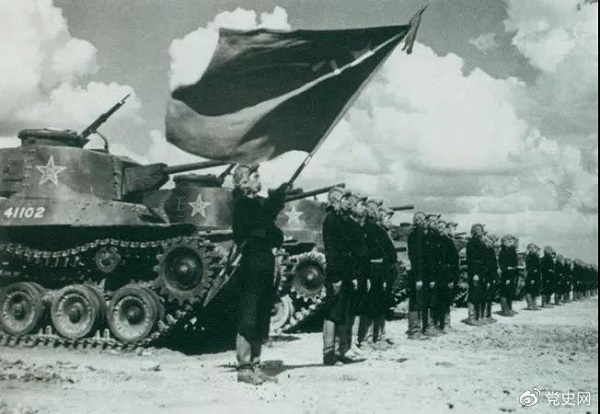 1950年9月,中国人民解放军装甲兵领导机构在北京成立。图为坦克部队阵容。