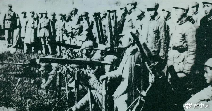 1945年10月至11月,刘伯承、邓小平率部取得了平汉战役的胜利。图为平汉战役参战部队及缴获的武器。