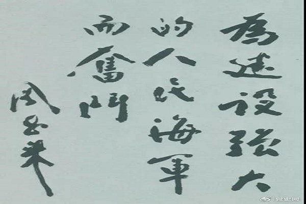 1953年11月3日,周恩来为东海某舰队题词。