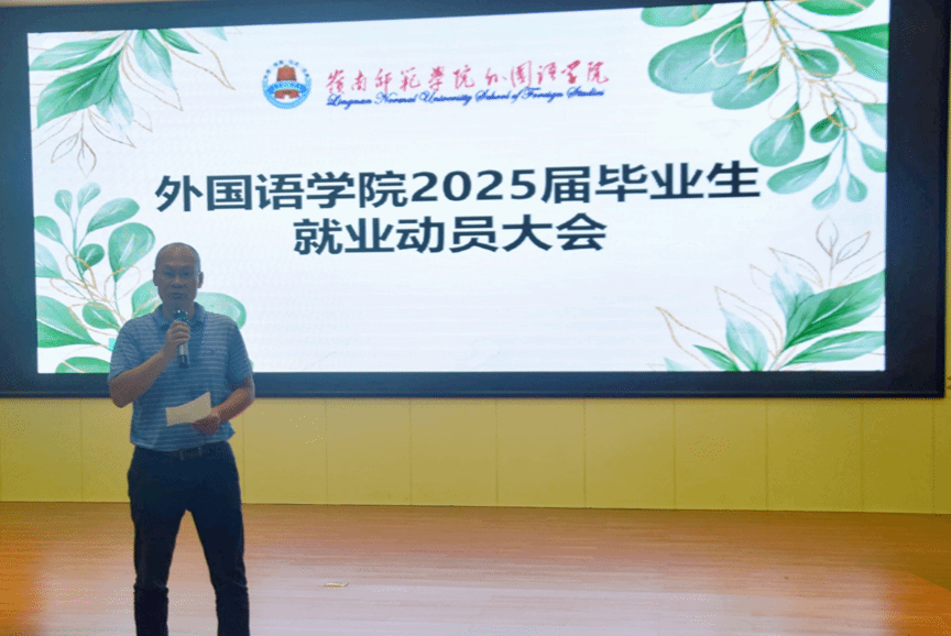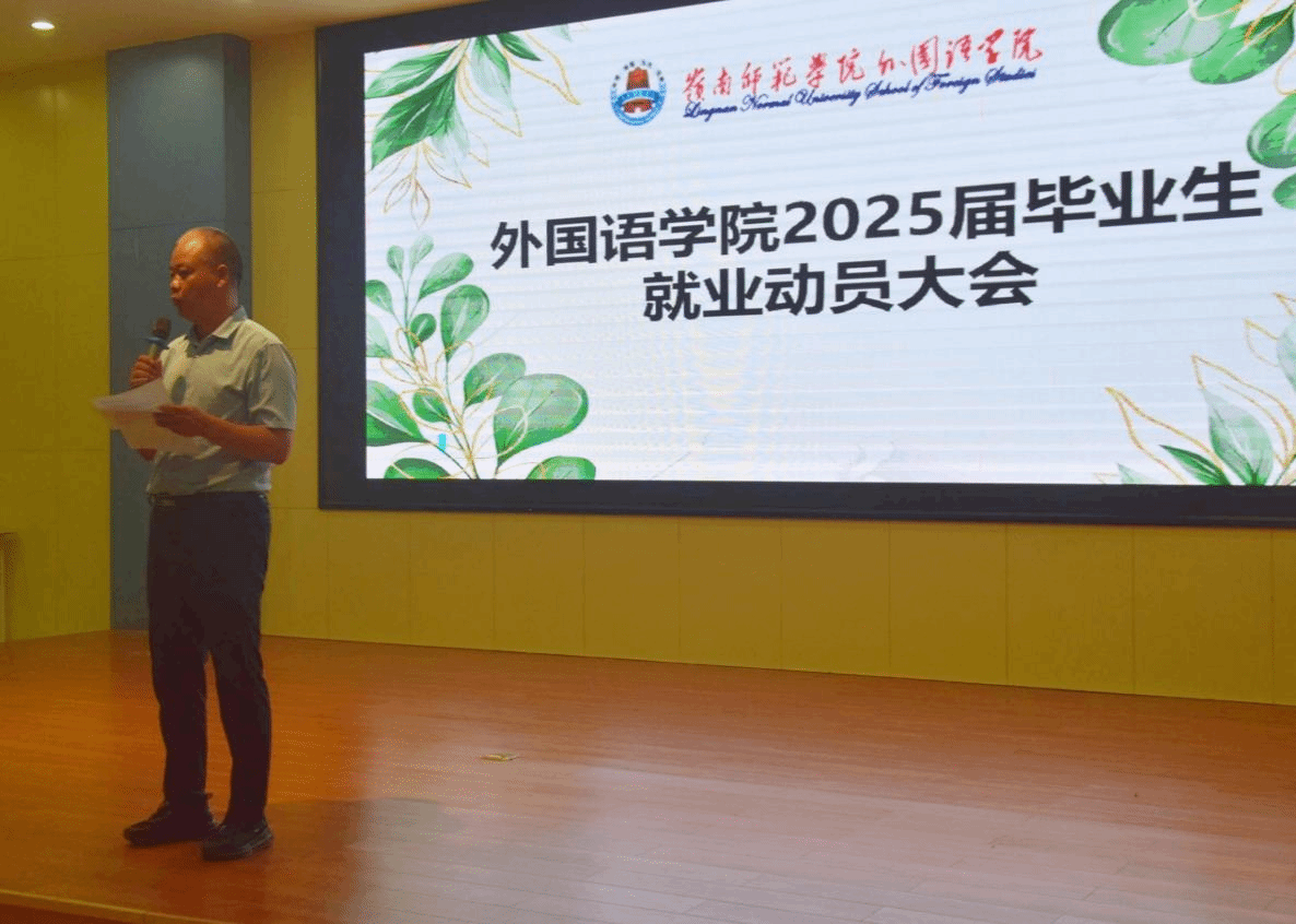 为帮助2025届毕业生更好地了解目前的就业形势,树立正确的就业观念,把握就业机会,实现毕业生高质量充分就业。近日,外国语学院于教三511顺利召开2025届毕业生就业动员大会。学院党委书记陈永国、党委副书记杨建伟、辅导员黄子琦老师出席本次会议,会议由杨建伟副书记主持。