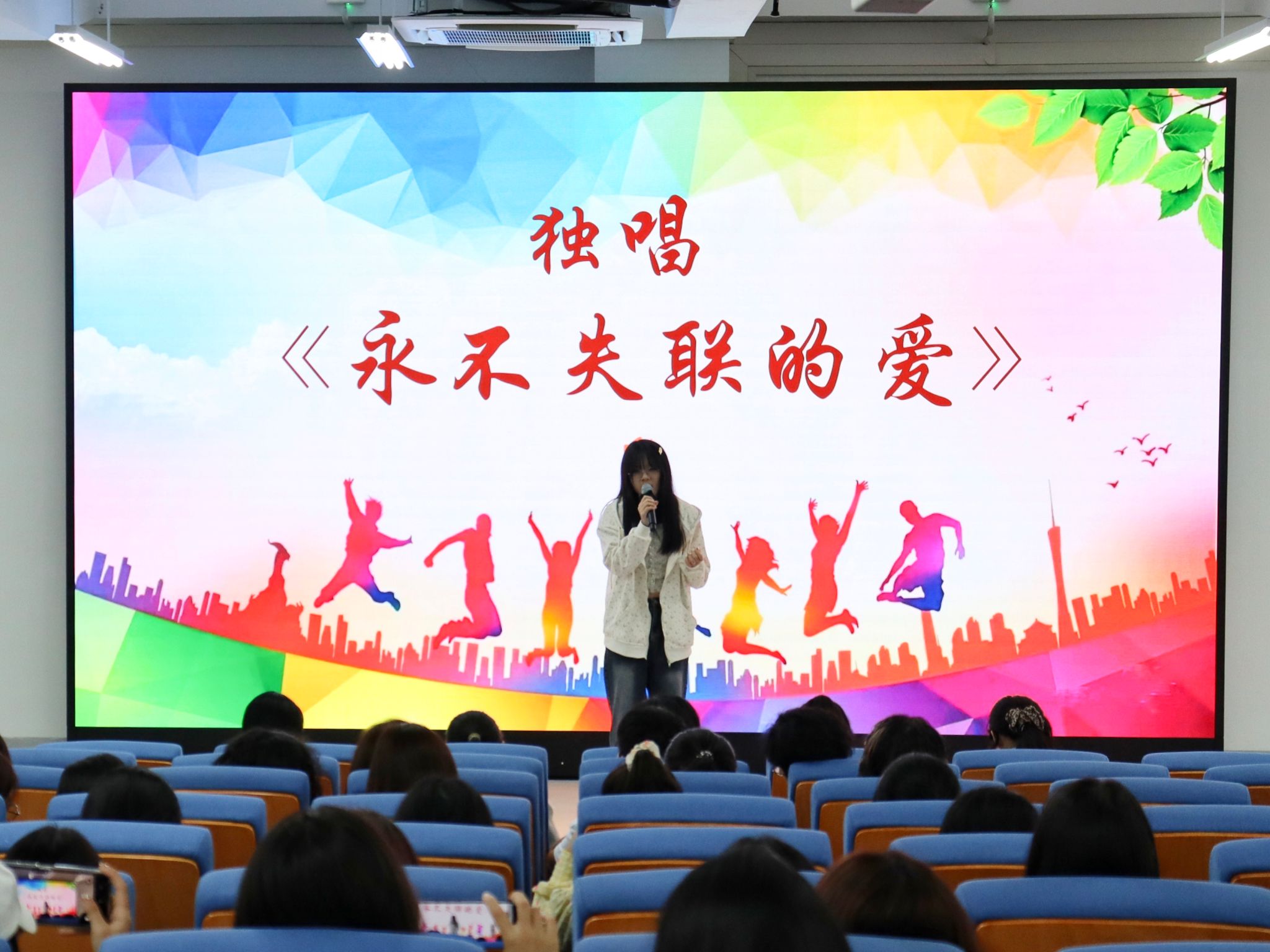 最后,李华婷老师上台讲话,她高度赞扬了参与本次比赛的选手们,她们不仅有非凡的才艺还有敢于参与竞赛的勇气,她们动听的歌声和曼妙的舞姿给在场所有人都留下了深刻的记忆,此外,李华婷老师还借用话剧表演节目《“贷”价》中的台词再次警醒同学们要擦亮双眼,抵制诱惑,坚决对校园贷说不。