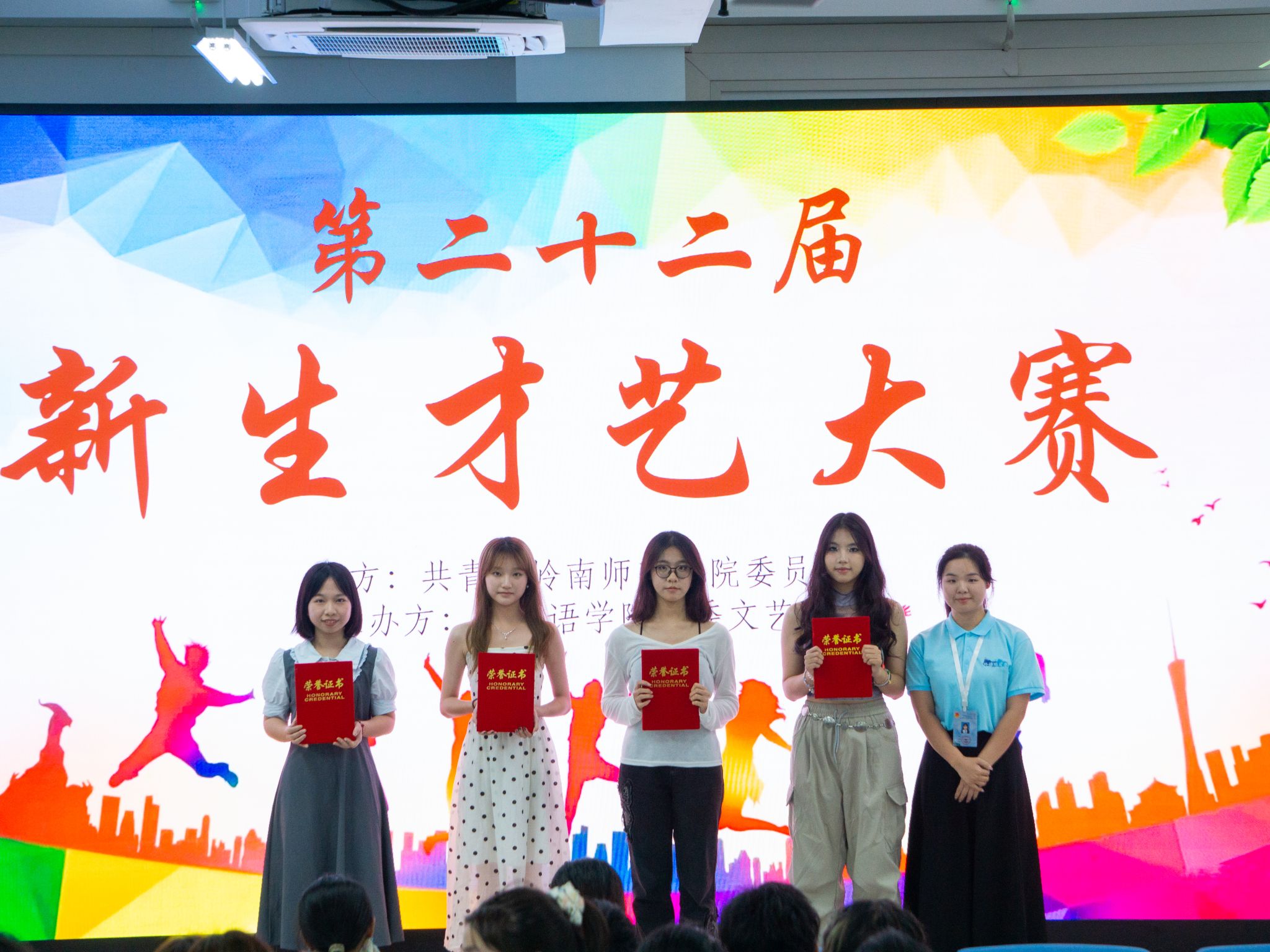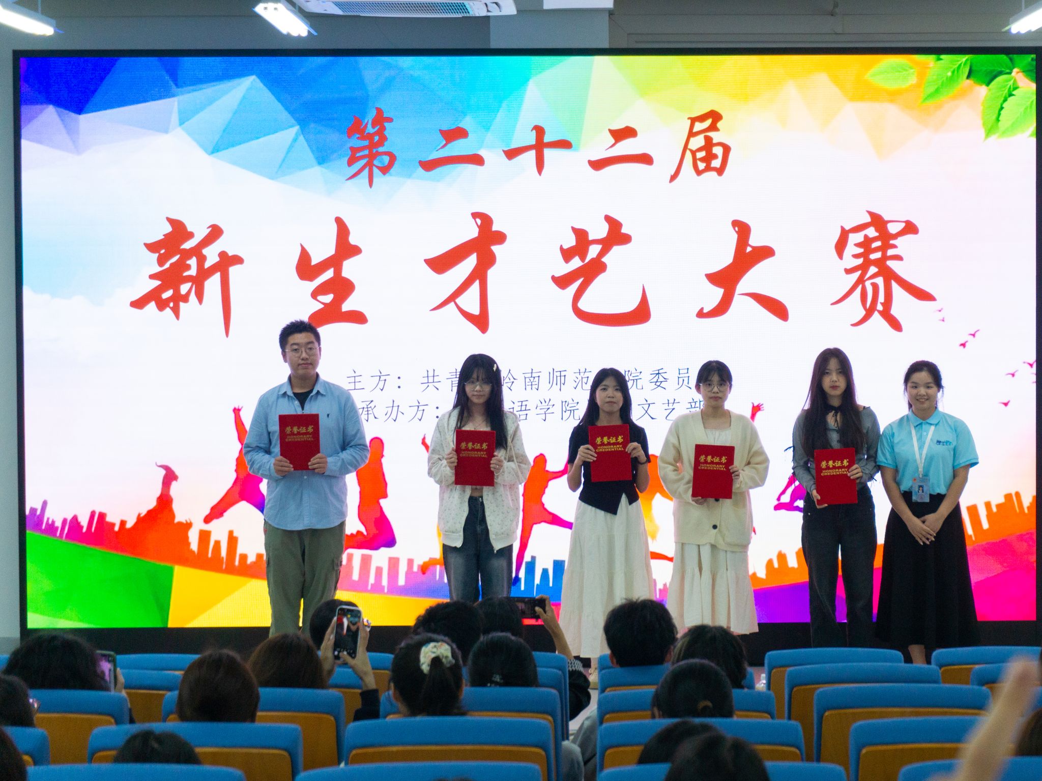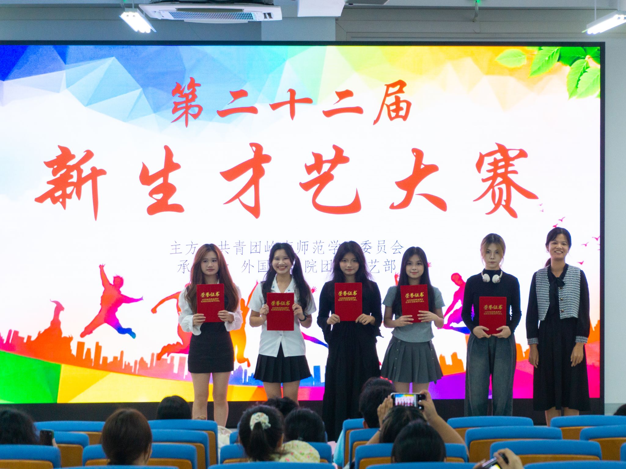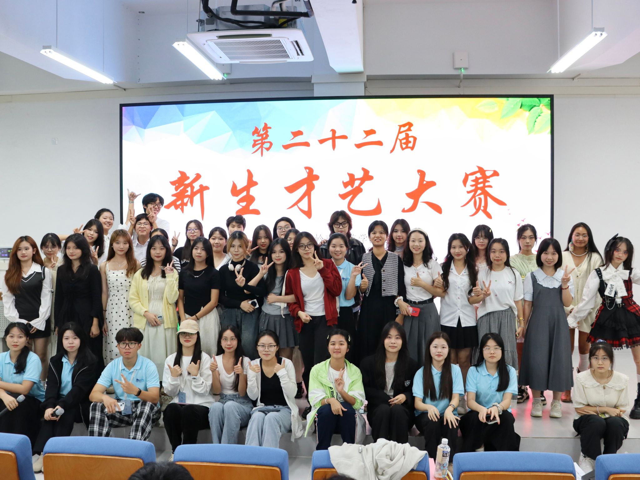 白日不到处,青春恰自来。24级外语院新生在美好的青春年华带着蓬勃朝气踏上求学之路。为促进同学们的全面发展,营造锐意进取,奋发向上的精神氛围,11月3日晚,岭南师范学院外语院团委于集贤楼101室举办第二十二届新生才艺比赛。出席本次大赛的有外语院李华婷老师,外语院团委秘书长以及外语院文工团团长。