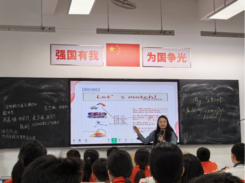 随后,实习教师陈广润展示了一节英语公开课。陈韵桥在课后点评中认为,该课堂气氛轻松活跃,教学目标明确清晰,教学过程层层递进,体现了良好的课堂组织能力。同时,也指出课程的活动设计可进一步优化,建议增强英语语言的实际运用,以更贴合英语教学的实际需求。