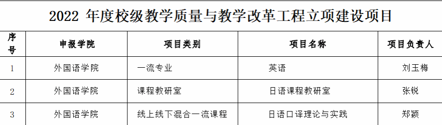 外国语学院积极组织教师申报2022年校级教学质量与教学改革工程项目,喜获1项一流专业建设点,1项课程教研室,1项线上线下混合一流课程。
