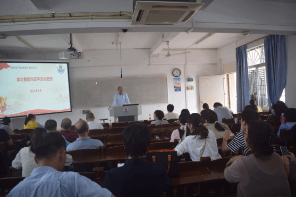 全国宣传思想文化工作会议正式提出并系统阐述了习近平文化思想,为做好新时代新征程宣传思想文化工作、担负起新的文化使命提供强大思想武器和科学行动指南。为深入学习贯彻习近平文化思想,加强教职工思想文化教育,提升教职工思想觉悟,推动本科教育教学和科研教研工作发展,4月12日下午,外国语学院于教三908教室召开教职工学习贯彻习近平文化思想主题理论学习会议。外国语学院党政领导班子及全体教职工出席了此次会议。会议由学院党委书记陈永国主持。