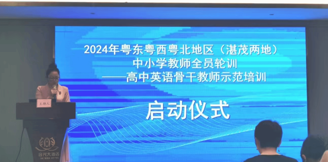 2024年5月13日下午,由岭南师范学院外国语学院承办的2024年粤东粤西粤北地区(湛茂两地)中小学教师全员轮训--高中英语骨干教师示范培训班开班并在广州花都区温悦丽华酒店举行了启动仪式。岭南师范学院外国语学院院长吴晓春、英语系主任唐汉娟、学院办公室主任翁惠萍以及来自湛江和茂名两地各中学的50名参训学员出席了启动仪式。岭南师范学院外国语学院英语系主任唐汉娟主持启动仪式。