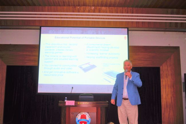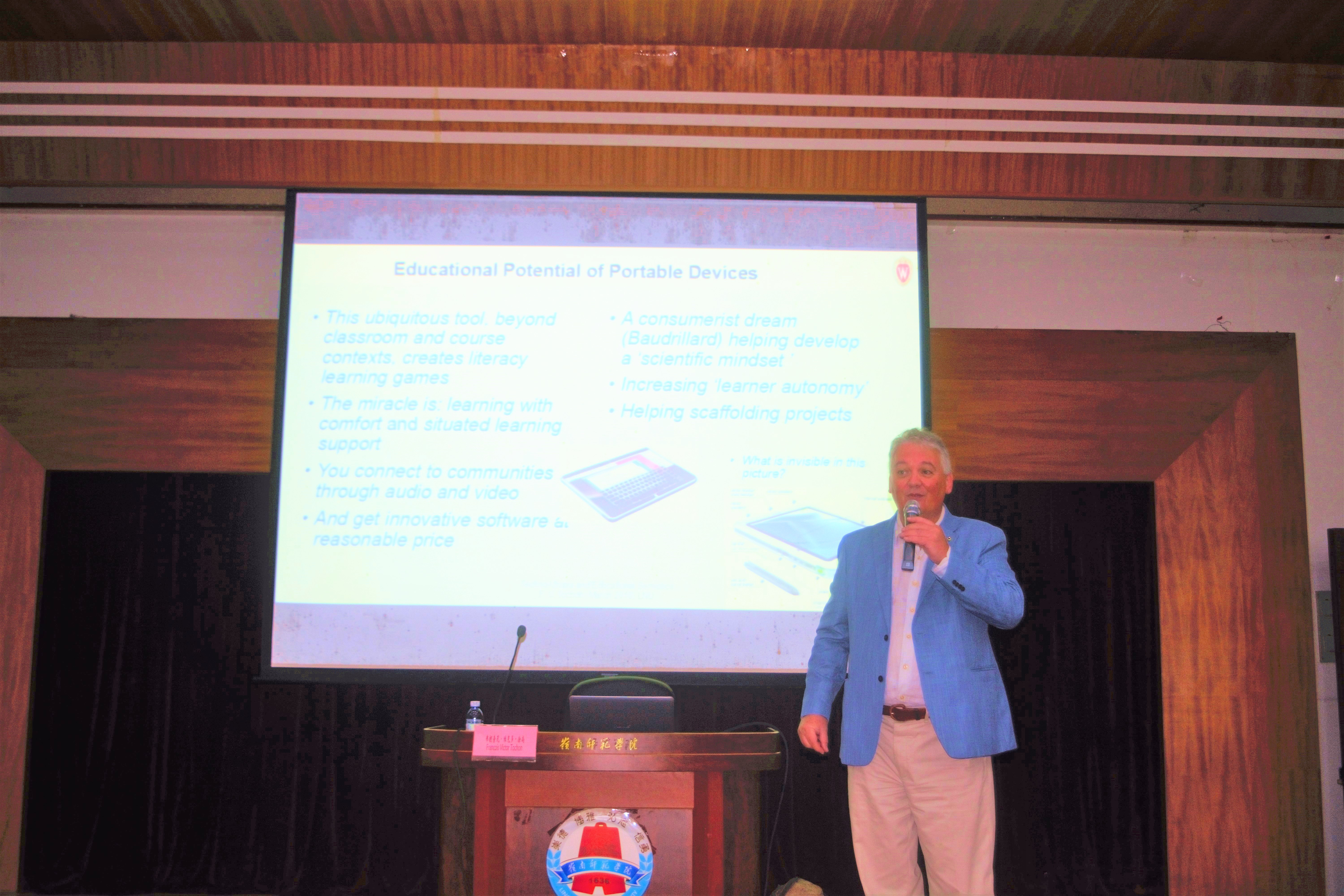 2018年3月20日,由学校教育研究院、粤台教师教育协同创新发展中心、粤西教室教育研究中心和外国语学院主办,美国威斯康辛州麦迪逊大学教育学院课程与教学系终身职位教授弗朗索瓦•维克多•涂尚博士主讲的“科技乌托邦:教育符号学能教给我们什么”专题报告讲座在图书馆学术报告厅举行。教育研究院王国辉副院长、崔政思博士、教育科学学院卢宝祥教授,番宝珂博士及外国语学院高年级学生出席了本次讲座。