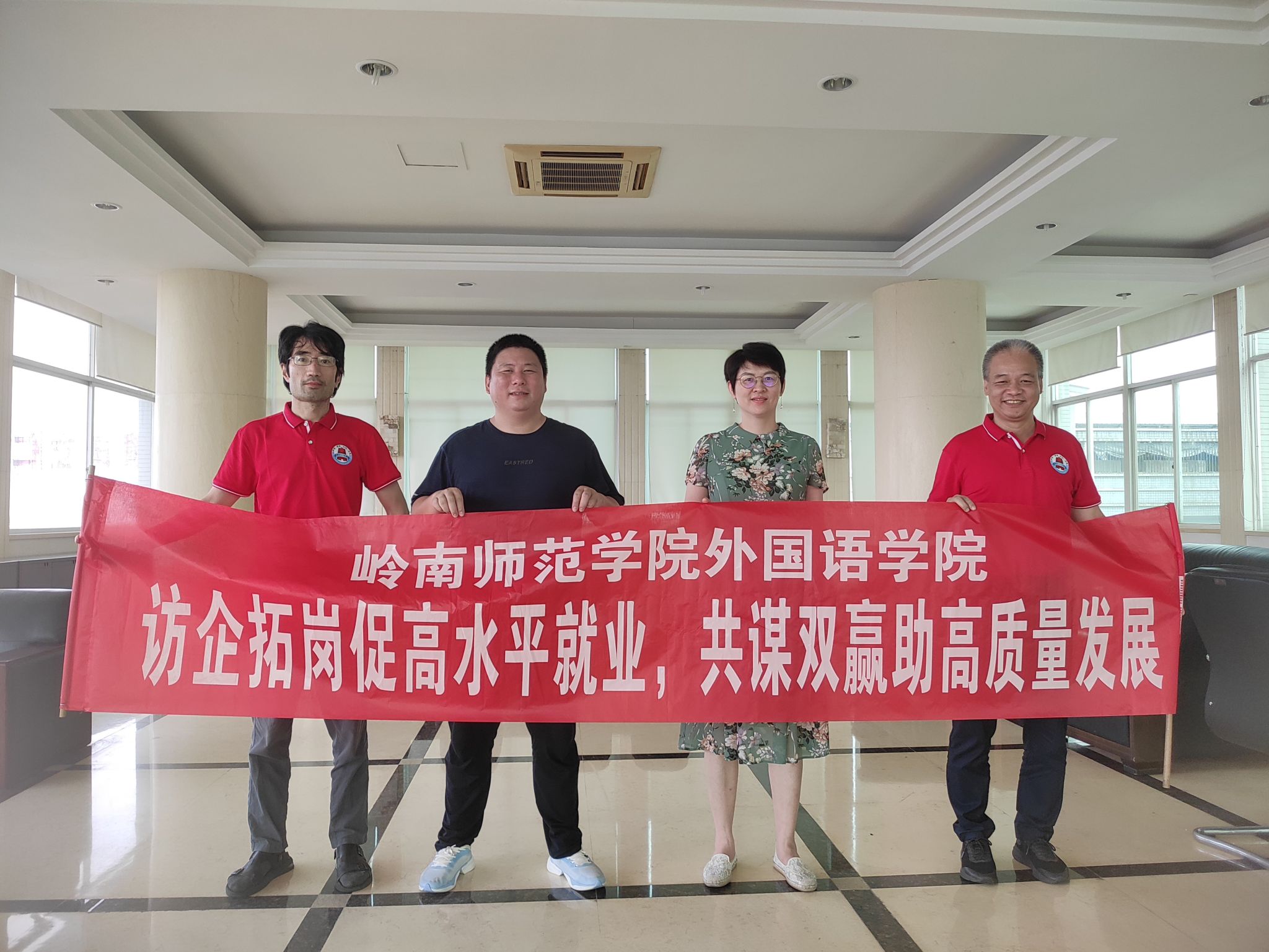 为更好落实党中央、国务院“稳就业”、“保就业”决策部署,促进高校毕业生实现更高质量就业,进一步加强校企合作,2023年6月14日至16日,外国语学院党委书记陈永国、主持行政全面工作副院长吴晓春、翻译系主任冯春波、辅导员吴玉莹等一行赴肇庆市开展“访企拓岗”工作,深度开展调研。