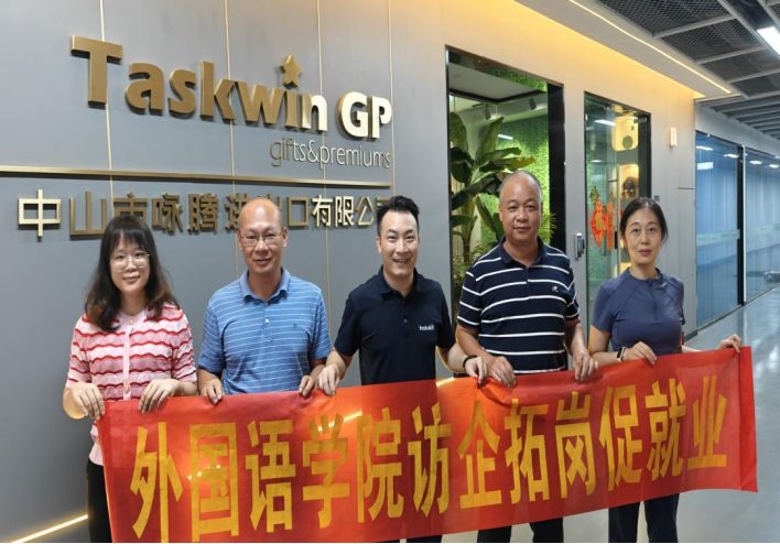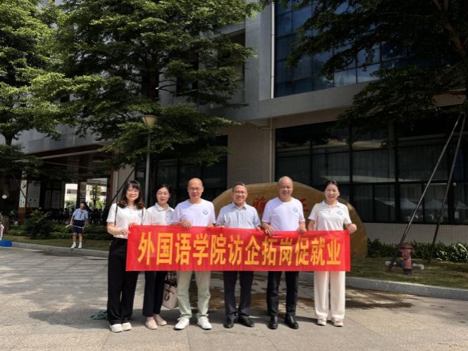 为进一步加强校友与母校联络,切实拓宽就业渠道,全力促进毕业生更加充分更高质量就业。6月24日至26日,外国语学院党委书记陈永国、党委副书记杨建伟、商英系主任李海红教授、日语系主任张锐博士以及学工办辅导员黄子琦一行四人赴中山、东莞、深圳开展访企拓岗工作,精准对接岗位需求,深化校企合作。