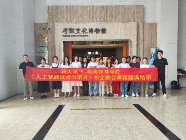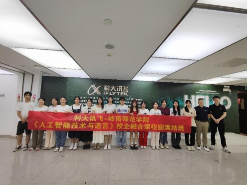 本次研学活动是外国语学院与科大讯飞合作推出的校企融合课程——《人工智能技术与语言》的结课环节。作为校企共建的跨学科课程,该门课程集合了计算机科学、人工智能、师范教育和语言学等多个学科的知识体系,致力于帮助学生深入理解人工智能的基本概念、原理及其在解决语言教育与教学问题中的实际应用。课程由我院吴晓春院长、孙啸雨老师和科大讯飞团队共同设计、共同授课。