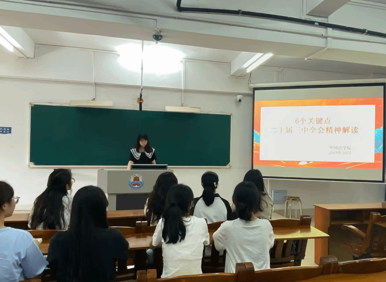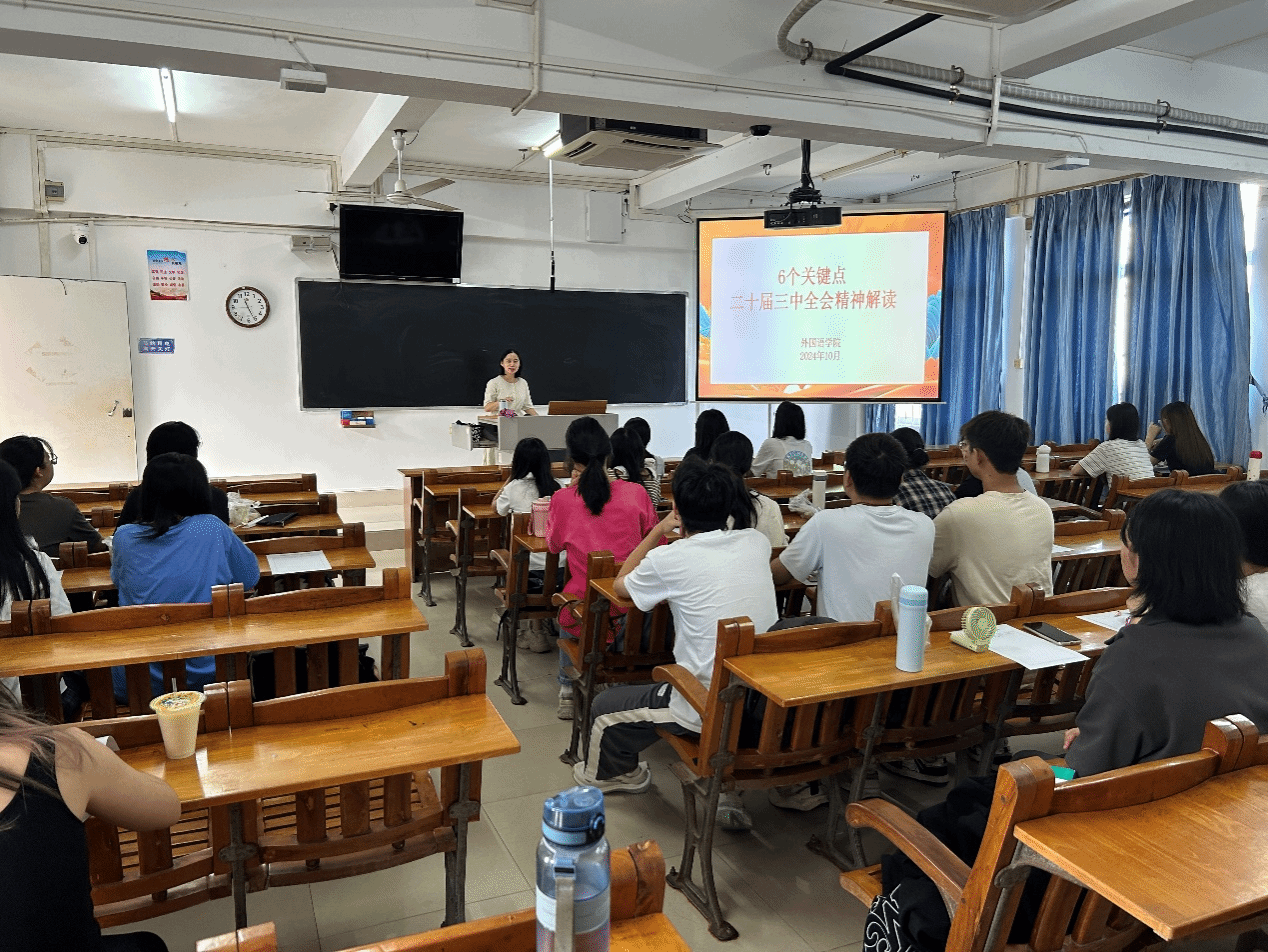 系列宣讲会让同学们对党的二十届三中全会精神有了更为深刻的认识。下一阶段,学院将持续深入学习贯彻党的二十届三中全会精神,将学习成果转化为推动学院高质量发展的实际行动,努力培养更多具有创新精神和社会责任感的外语人才。