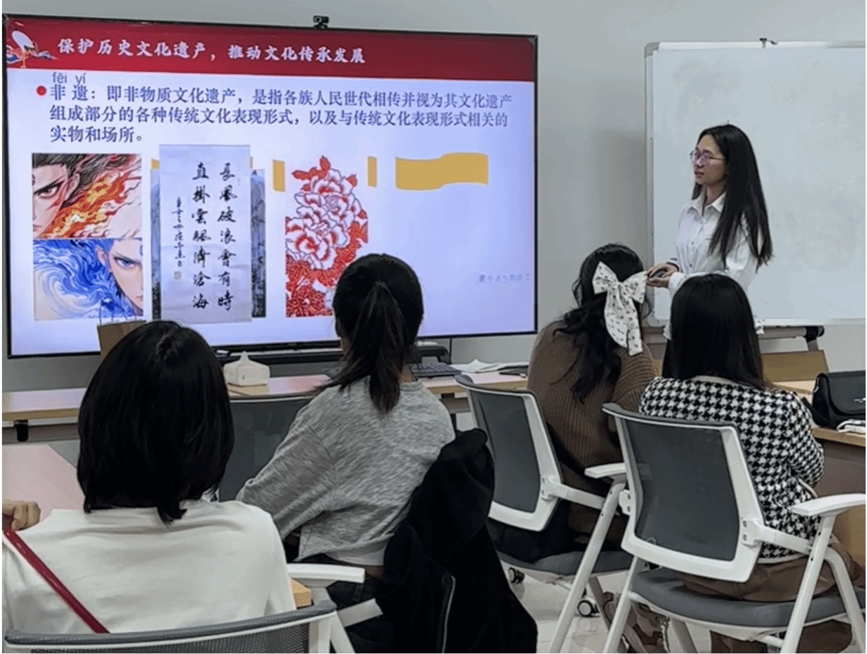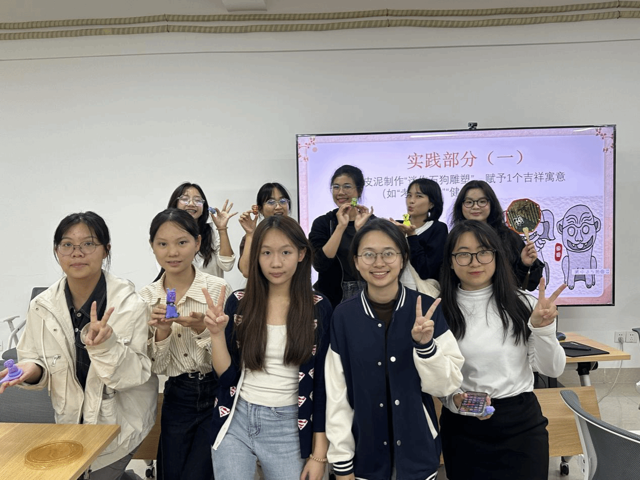 而在湛江非遗文化交流课程中,23级商务英语专业的方垒、杨轶君、谭雨菲、余静雯四位同学,在李媛媛老师的精心指导下,化身“文化传播使者”,与泰国皇家理工大学中文专业留学生们共同开启湛江非遗探索之旅。