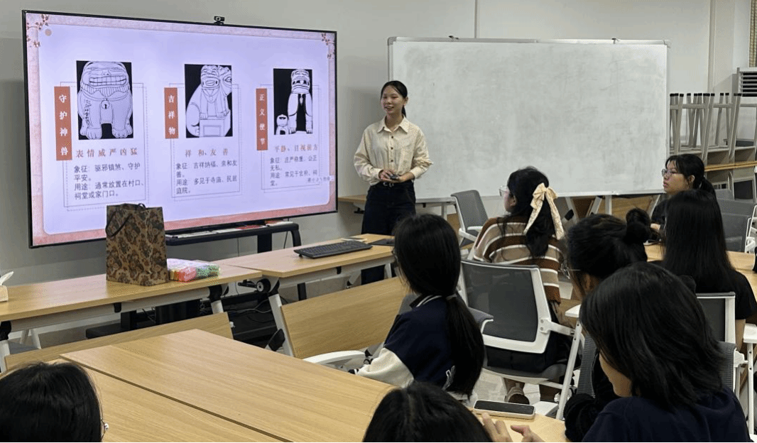 首节湛江非遗文化交流课程以《2025湛江非遗文化节宣传片》开场,傩舞的神秘、调顺网龙的磅礴,瞬间抓住学生们的目光。互动环节,中泰学生热烈讨论,对比中泰两国传统文化异同,小老师们结合案例讲解非遗概念和湛江非遗特色。实践环节,学生分组设计非遗文化创意明信片,在小老师们和志愿者协助下,中泰学生发挥创意,将对非遗的理解融入作品,增强了非遗文化传承意识,也增进了彼此友谊。