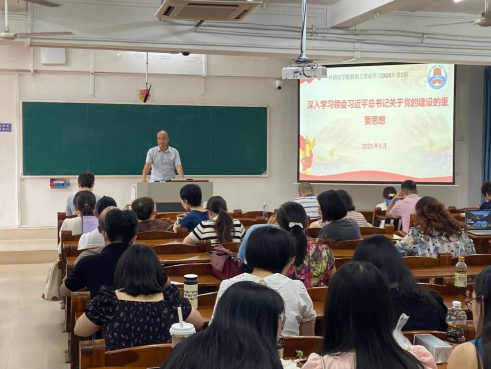 5 月 23 日,外国语学院在教三605 召开全院大会,深入学习领会习近平总书记关于党的建设的重要思想。外国语学院全体教职工参加会议,会议由学院党委书记陈永国主持。