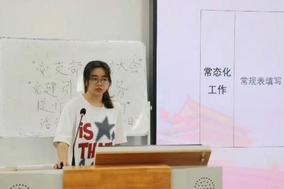 接着是二支部活动团成员邓伊婷讲话,她介绍了二支部表格填写、信息团及活动团相关常态化与非常态化工作的安排。