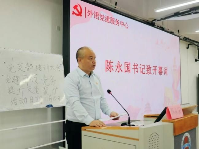 会议第一项议程,学院党委陈永国书记为大会致开幕词。他立足党建工作实际,从“提高政治站位、夯实能力基础、严守纪律规矩”三个维度,向全体党务干部提出了明确要求,给予了殷切嘱托。陈书记特别强调,作为外语专业的党务工作者,既要深耕专业领域、争做学科“佼佼者”,更要锚定党务职责、当好工作“实干者”,以“双轮驱动”的姿态助力学院党建与学科建设同频共振。