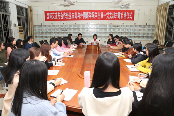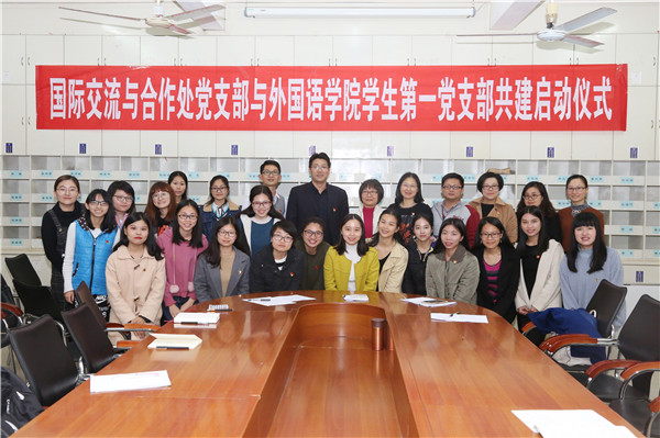 12月27日晚,学校国际交流与合作处党支部和外国语学院学生第一党支部共建启动仪式在外语院会议室举行。国际交流与合作处处长郑志军、副处长兼党支部书记肖建春,外国语学院党委书记冯彩莲、副书记梁煜鹏、学生第一党支部书记陈韵桥老师,以及国交处党支部全体党员、外语院学生第一党支部23名党员出席启动仪式,仪式由梁煜鹏副书记主持。
