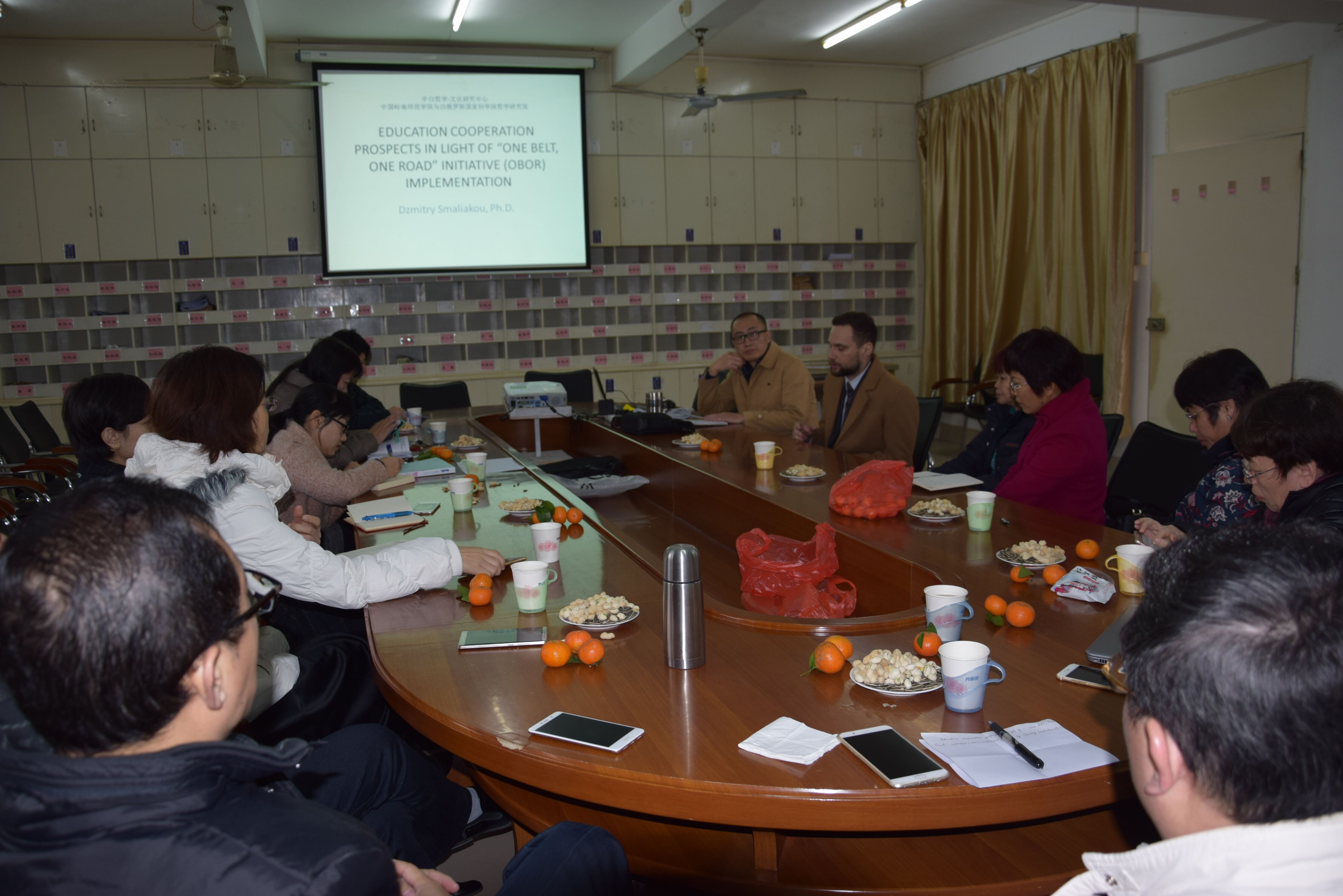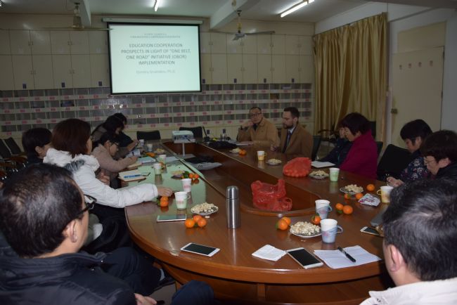 Dzmitry Smaliakou博士是白俄罗斯国家科学院哲学研究所高级研究员,近年来一直致力于在国际关系领域研究。目前在岭南师范大学工作(中白俄罗斯哲学与文化研究中心)。在工作中实施了一些重要的华白俄罗斯教育项目,担任秘书工作委员会在华白俄罗斯政府教育委员会合作领域,负责规划及在白俄罗斯和中国之间教育领域的合作实现。Dzmitry Smaliakou博士首先为我们作了一场报告,主旨为加强在高等教育领域的国际合作,如何在”一带一路”国家实现“一带一路”的主要目标及行动计划等。随后,他与与会老师一起分享和探讨了相关议题:1、分析欧亚高等教育国际化的现状,包括:1.1、语文政策研究、少数民族教育、文化合作;1.2、双边大学合作的成果和计划,以及全球合作;1.3、欧亚学术流动研究;1.4、大学联合科研合作。 2、高等教育现代化的政府政策分析(工具:国际化)。 3、为高等教育领域“带道”国家的可持续发展提供建议。