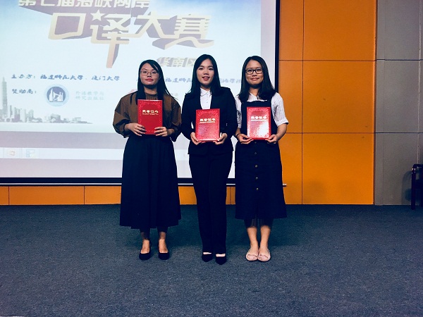 11月5日,第七届海峡两岸口译大赛华南地区区级赛在福建师范大学隆重举办,该大赛由福建师范大学主办,厦门大学协办。由岭南师范学院外国语学院陈拔萃老师指导的陈夏怡、李宛莹和张童三位同学均载誉而归,分获一个三等奖和两个优胜奖。