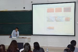 讲座伊始,杨红主任对小野彬部长表示热烈的欢迎以及深厚的谢意。随后,小野彬部长用流利的中文向同学们进行了自我介绍。接着,小野彬部长结合图片展示用日语开始讲授,以湛江的日本企业东洋水产有限公司为例,介绍了日本企业的文化特征,对日本企业海外发展的现状进行了详细的分析,并对学生在大学生活中应该掌握的综合技能、应聘的技巧等提出建议。告诉同学们,要获得一个好的职位,不仅要会说日语,自身的能力、实践经验也是非常重要的。讲授期间,小野彬部长发了东阳水产公司的商品一览表以及该公司生产的一些产品让同学们接触了解。讲授完毕,杨红主任及同学们以热烈的掌声感谢小野彬部长的精彩讲授。最后,小野彬部长还对同学们提出的问题给予了热情解答并邀请同学们品尝了该公司的水产品,加深了对该公司产品的了解。次次讲座试吃会的形式是日语专业讲座的一种创新模式的首次尝试,深受同学们欢迎。