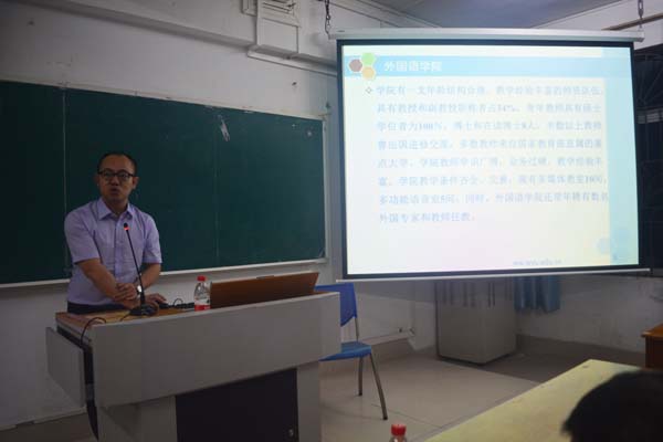 5月18日晚8点,五邑大学外国语学院考研宣讲会在教三510召开,由该院科研副院长周庭华博士(副教授)主讲,会议由陈韵桥老师主持,各年级对考研感兴趣的同学聆听了此次宣讲会。