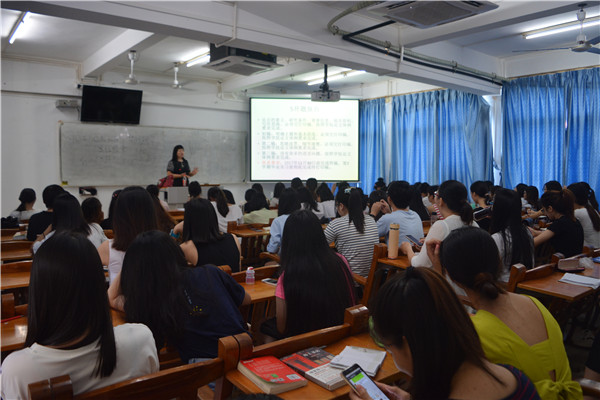 讲座伊始,杨红教授首先强调了毕业论文的重要性,即是整个教学计划的重要环节,与毕业证书,学士学位证书挂钩。接着,杨红教授从研究领域的确定,开题报告的写法,毕业论文的写法,论文的写作步骤四个方面展开详细的讲解。