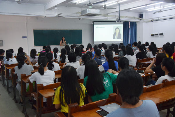 2018年6月1日,外国语学院邀请了我校知名校友,美国威斯康辛大学克莱尔分校外语系的助理教授孔凯珊博士来校开设“国外体验式及转换式学习模式”讲座,外语院孙卫东院长,部分英语教师,16级英语34班、17英语12班及其它感兴趣的同学出席了本次讲座。