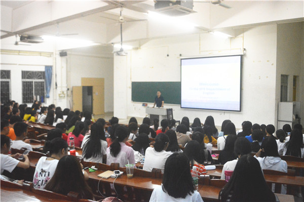 为了让2018级新生尽快适应大学生活,了解自身专业,端正学习态度,外国语学院英语专业于9月9日晚在教三511室召开了2018级师生见面暨专业介绍会。主讲人为英语系主任陈尚真博士,屈书杰教授和2018级英语专业的学生出席了本次会议。