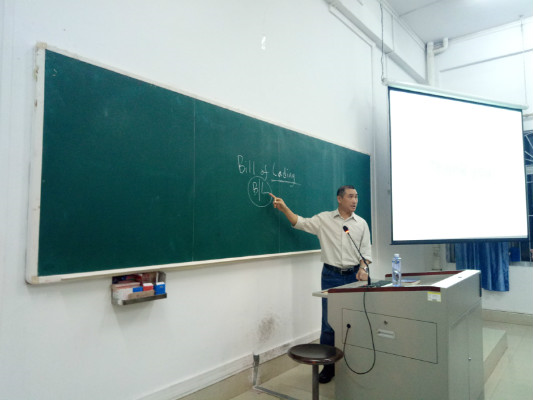 讲座伊始,范冲老师先向我们解释商务英语的定义:Business + English。两者比较而言,范老师认为能用流利的口语交流更加重要,这需要同学们积累词汇,特别是专业术语,多进行英语对话及了解各个国家文化知识。接着,范老师表示,谈及国际商务中,协议或是合同总是不可避免的,而国际商务大多是按英美法系进行,并建议同学们自学《维斯比规则》和UCP600。随后,范老师鼓励学生们在大学四年内广泛阅读各类书籍,丰富自身知识,成为一个有趣的人,多交朋友,经营自己的人脉,以及学会利用父母的人脉。其次,范老师根据自己的经验告诉学生们,要想获得成功,需要谨慎选择职业并坚守职业道德,在给同学们介绍了有关商英的工作中,范老师希望同学们早做规划,为此努力。最后,范老师耐心地解答了同学们的提问。