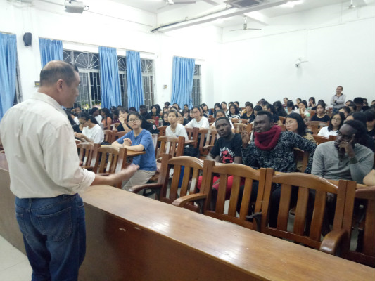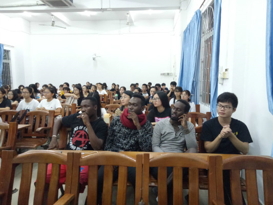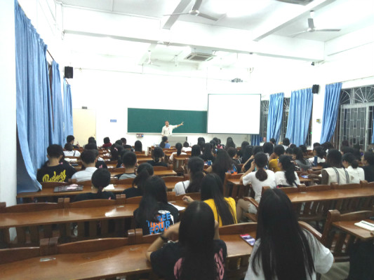 为了让同学们对商务英语专业有更深入了解,11月16日晚,外国语学院于教三108室成功举办了商务英语学习与职业选择讲座,由湛江长凯船舶代理有限公司范冲总经理应邀就商务英语学习和职业选择做了全英文的报告,国际商务与外事系林海主任主持,18级商务英语全体同学、留学生全体同学及其它专业感兴趣的同学出席讲座。