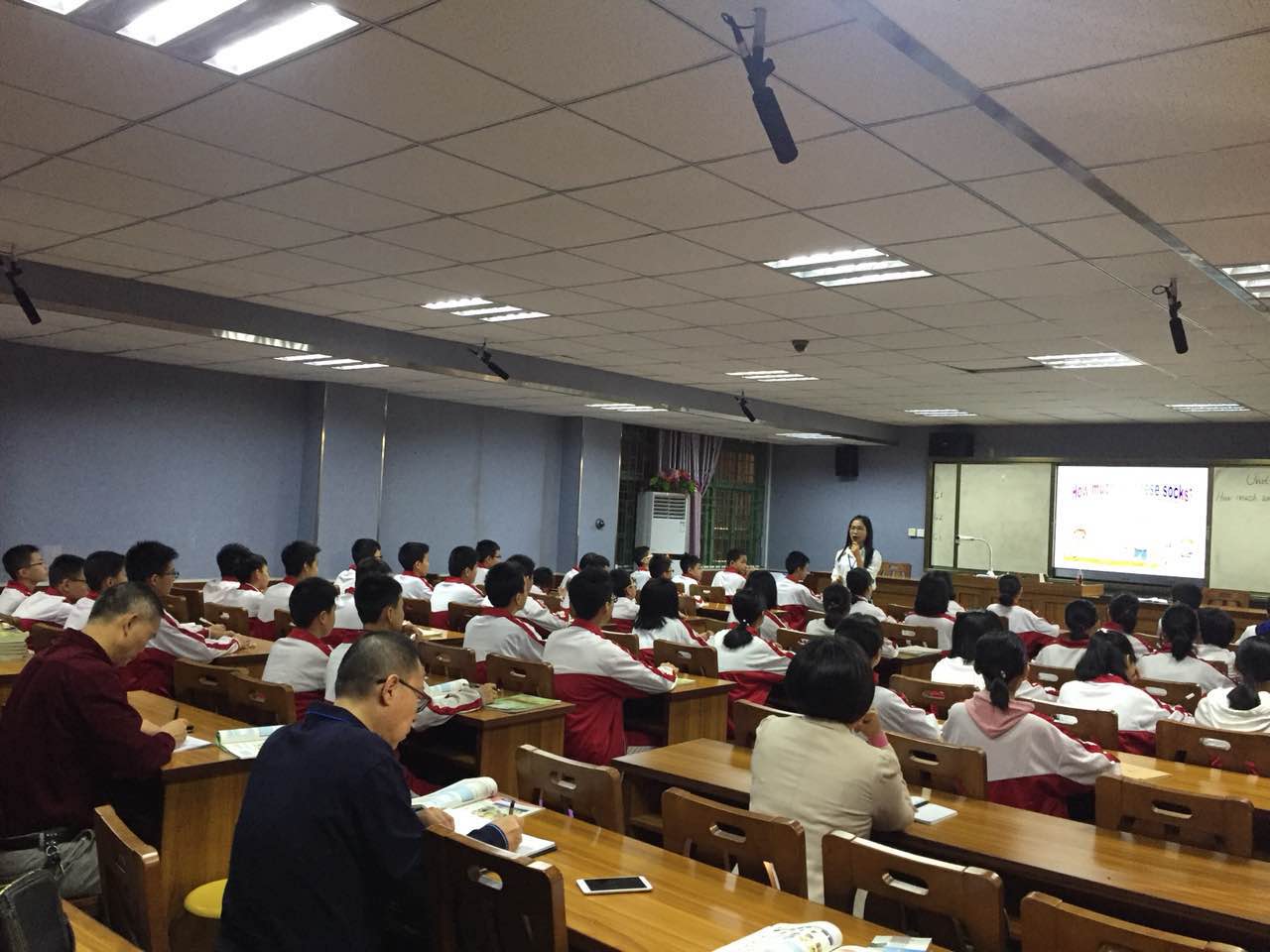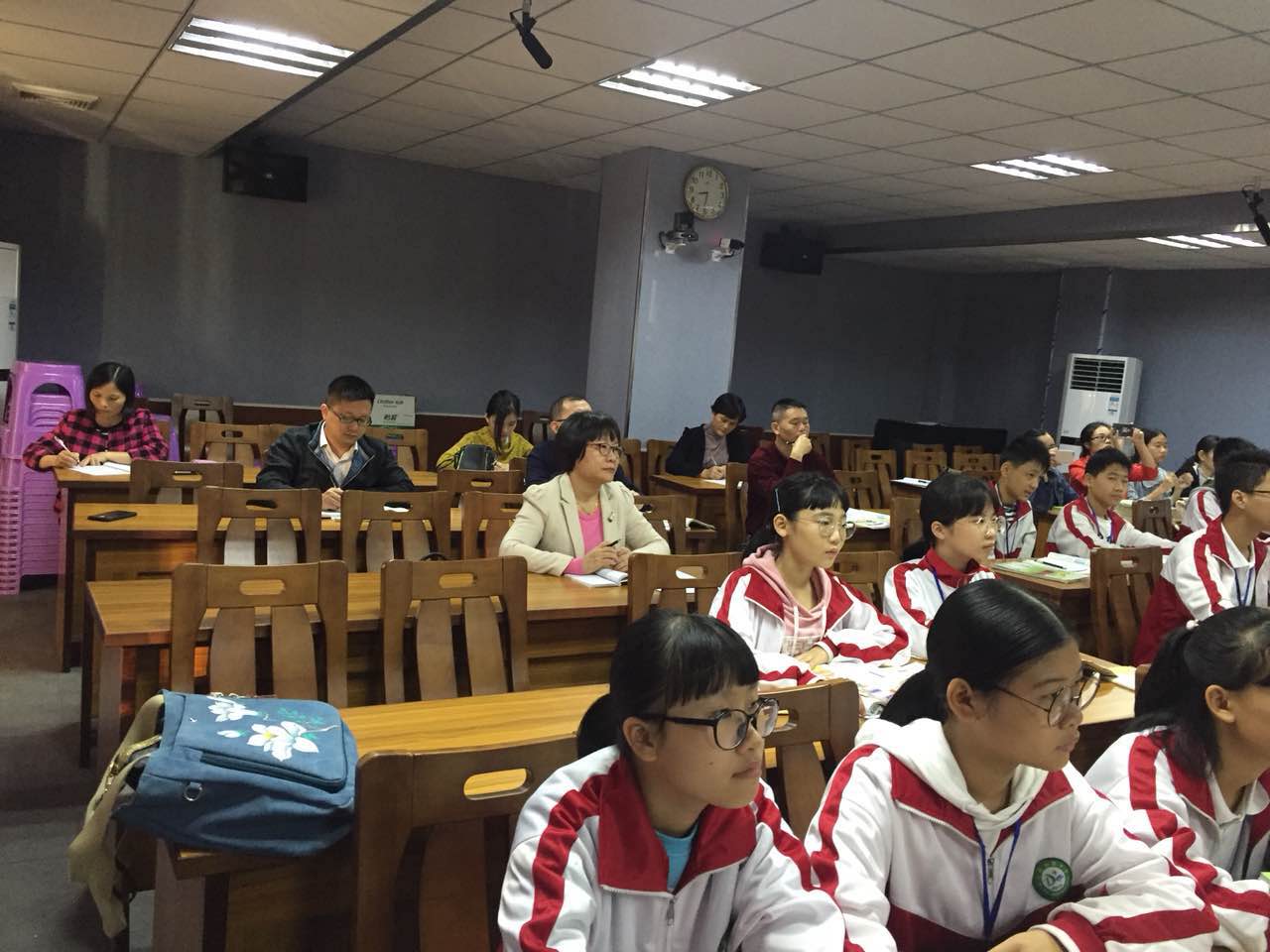 冯彩莲一行在大成初级中学李华贵校长及该校英语科组部分老师的陪同下,听了由王靖敏、黄婷敏两位同学主讲的两节公开课。并在公开课后与全体实习生召开了座谈会,认真听取同学们汇报他们的实习感受、体会和收获,遇到的困难和对专业课程设置的建议等,并对同学们关心的问题作了相应回复。