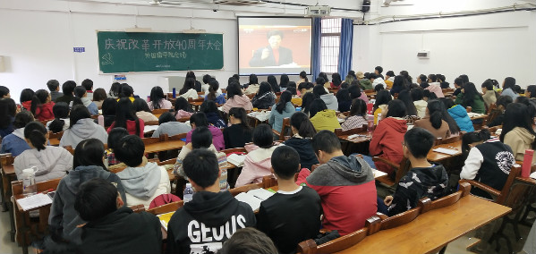 12月18日上午10点,改革开放40周年庆祝大会在人民大会堂隆重举行。外国语学院领导班子、全体教工、学生党员、各学生机构主要干部以及学生代表于教三405室集中收听收看大会直播,并认真学习讨论习近平总书记发表的重要讲话,回顾了改革开放40年的光辉历程。