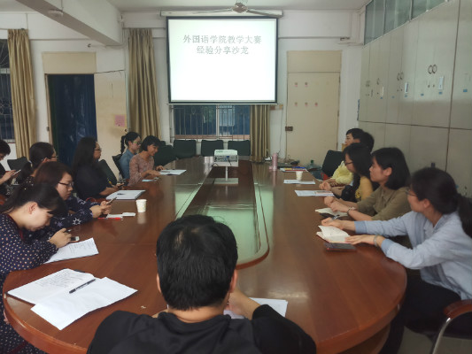 5月10日下午,外国语学院于学院会议室成功举办教学大赛经验分享沙龙,本次活动由外语院副院长莫海文教授主持,俞炎燊老师、刘丽萍老师和郑颖老师进行了经验分享,报名金课研讨沙龙、青年教师教学比赛的教师及其他部分教师参与了本次沙龙。