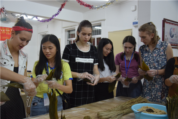 5月29日晚上,为了促进中俄文化的进一步交流,让来自白俄罗斯的老师和同学们感受中华文化的魅力,外国语学院在志道苑青年驿站举行了“情系中俄 共享美好端午”活动。本次活动由冉璇、伍银仪主持,白俄罗斯国立体育大学的NATALLIA KASTSEYEVA老师及学生们,中白哲学研究中心韩小燕博士、外国语学院陈理才老师、外国语学院团委干部和商务英语协会成员参与了本次活动。
