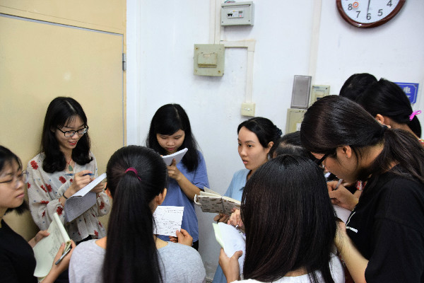 随后,Dr.Bigelow对“jig saw”教学法进行了详细的介绍,即“拼图教学法”,将学生分为四个小组,让学生在各自小组内讨论,学习事先分割成片段的学习材料。为了使同学们更好地体验该教学法,她以“healthy life”为话题进行了活动。同学们根据如何拥有健康的头脑与身体、良好的财政状况与人际关系这四个话题画出了思维导图,并小组的形式进行了热烈的讨论,互相分享想法,整理笔记,从而了解如何获得健康生活的方法。通过“healthy life”活动讨论,同学们学习到了“jig saw”教学法,体验了“jig saw activity”。