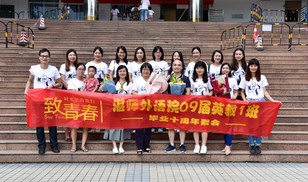 每年暑期,是校友回校团聚的黄金时间。2019年7月27日,岭南师范学院外国语学院喜迎三个校友班级回校举办值年庆活动:1989届英语(3)班举办毕业三十周年年庆活动、2009届英教(1)班与2009届英教(4)班举办毕业十周年年庆活动。参加三个班活动的有外国语学院党委冯彩莲书记、张国新老师、古永辉老师与科研处陈理才科长。