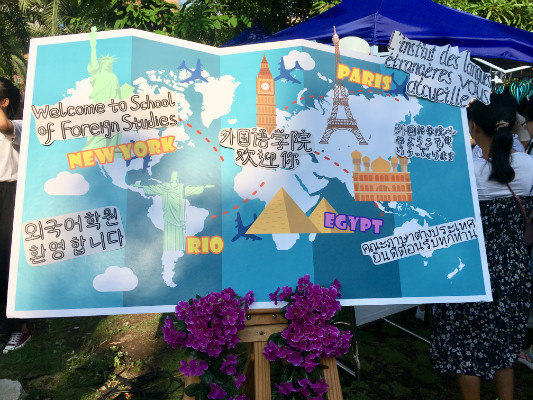 (外国语学院大本营的迎新布置)