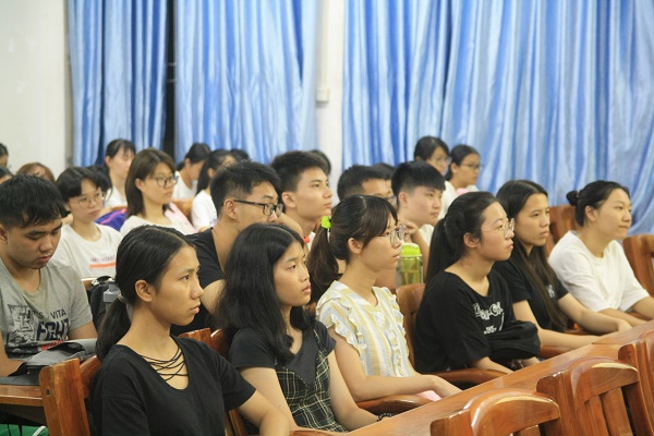 在商务英语专业新生见面会上,林海系主任先是介绍了商务英语专业的由来以及这个专业的就业前景和就业方向,加深了同学们对商务英语专业的了解。他告诫同学们要在大一就打好基础,加强听说读写能力。随后,他对新生在接下来的大学生活给出了许多建议,如在思维方式和行为方式方面要高度、自我定位要清晰适当、在与人沟通接触方面要和善。最后,来自16级商务英语专业的林志杰、周根、邓丽君同学为新生发表讲话,传授了自己在大学生活中的经验。