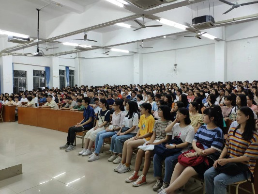在英语专业师生见面暨专业介绍会上,英语系全体老师及2019级新生参与了本次会议。吴晓春主任向新生介绍英语系的情况,而其他老师也纷纷向新生传授学习经验,希望新生能在大学四年超越自我,提升自己。另外,16级师姐江欣茜和吴雅玲分享了她们的学习经验,希望新生重视学习,多参加比赛,锻炼自己。