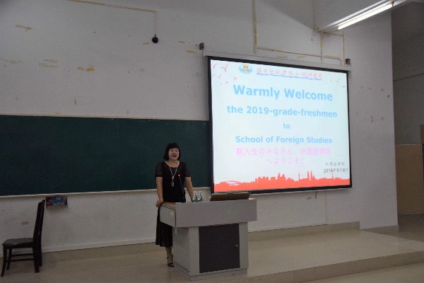 会议伊始,杨红副院长向全体师生致欢迎词,杨红副院长首先热烈欢迎新生的到来,认为新生们的到来如清风一般,让外语院不断灌入新鲜血液。然后提出在场新生必须做一个新时代与时俱进的大学生,并且要尽快适应新环境,树立新目标,强调了外国语学院大家庭的真情友爱。