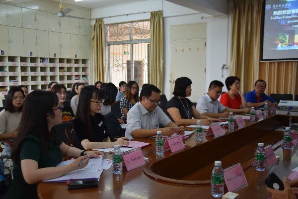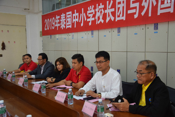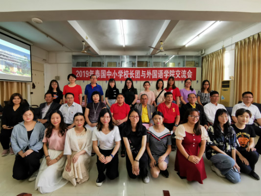 10月12日下午,外国语学院于弘雷楼学院会议室开展2019年泰国中小学校长团与外国语学院交流会。负责我校学生赴泰带薪实习项目 泰国SPN Baanpasa股份有限公司经理Ms. Nion Rodkhao及Chainatpittayakhom学校等实习学校校长一行7人,外国语学院副院长杨红、莫海文,党委副书记梁煜鹏,英语系主任吴晓春、副主任刘丽萍、陈尚真博士和外事秘书李媛媛老师、2019年5月赴泰返校学生以及2019年11月赴泰学生出席会议,莫海文主持会议。