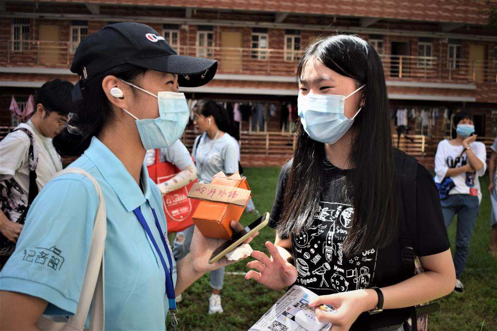 助班们早早地便来到了大本营,提前布置好现场,为迎新做好充足的准备。外国语学院各机构干部及志愿者们都以最饱满的热情帮助新生。他们按照防疫流程有序地进行测温、引导新生办理注册手续、帮助新生搬行李。师兄师姐们对新生无微不至的关心和帮助,让他们感到家的温暖。外国语学院的第一位到校新生是来自日语专业的黄同学,“师兄师姐都十分热情”,她发表了她的第一感受。来自2020级英语专业的黄同学也说助班们都很体贴和负责任,在微信群里都会耐心地回答2020级同学提出的疑惑,让她觉得很可靠、放心。
