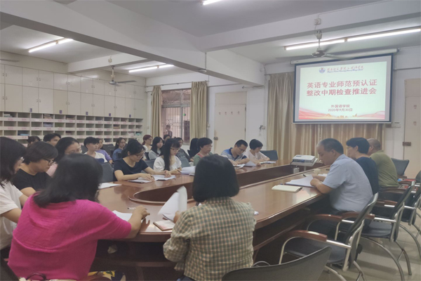 9月30日下午,外国语学院吴晓春副院长(主持行政全面工作)在学院会议室主持召开英语(师范)专业预认证整改中期检查推进会议,学院党委陈永国书记,杨建伟副书记、英语系主任古永辉老师、英语系教师及相关行政人员参会。