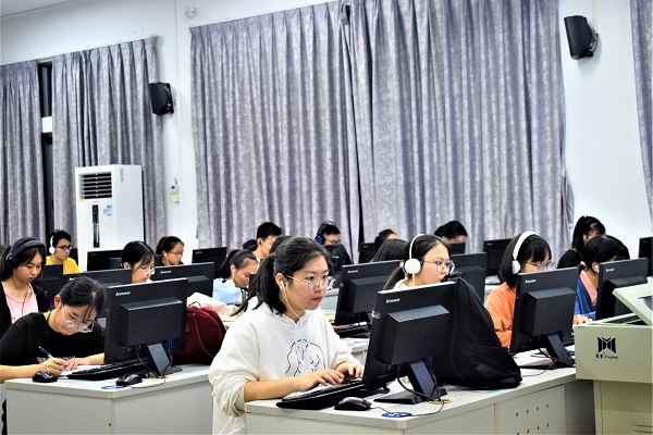 11月9至17日,由我校教学发展与质量测评中心和外国语学院联合举行的2020级新生英语入学水平测试圆满结束,在综合实验楼B栋公共计算机室共举行了8场测试,全校2020级5000余名新生(英语专业学生和艺体生除外)参加了此次测试。此次测试的目的是:探索我校大学英语增值评价,提高我校大学英语教学质量。测试采用了全国大学英语四级标准化试题,包括写作、听力、阅读、翻译四种题型,从出题到测试到阅卷,全程采用科大讯飞股份有限公司FiF智慧教学平台的讯飞AI考试系统,实施现场、电脑端、在线测试的方式。本次测试有三个特点,规模大,题型全,方式新,在很多方面取得突破:首次对我校新生进行入学后英语摸底测试,首次进行5000多人的大型机考,首次采用对设备和技术具有挑战度的听力、主观题题型,这些突破不仅为评价大学生英语素养提供了重要依据,对我校考试方式改革同样具有里程碑式的价值和意义。