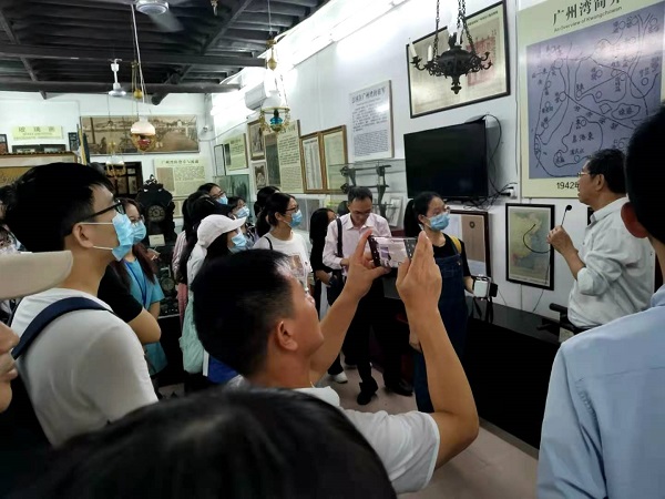 (广州湾历史民俗馆馆长为党员们讲解广州湾历史)