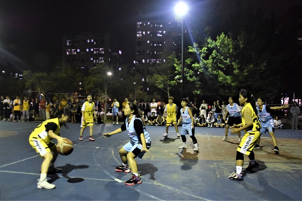 11月27日晚,外国语学院女篮在雷阳区5号篮球场与信息学院女篮进行八强赛的激烈角逐。