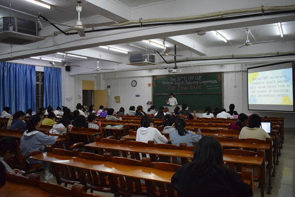 决赛的辩题为:“THBT university graduates should pursue their dream career even at the expense of receiving very low monetary return”。在辩论的过程中,选手们积极辩论,不放弃任何机会提问,赛场氛围高涨。在观看了选手们精彩的表现之后,来自18翻译的主持人黄嘉欢致辞发言,她表示选手们的表现都很出色,并宣布了比赛结束。
