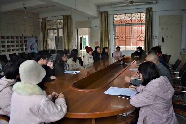 12月22日中午,外国语学院在教三学院会议室举行慰问考研学生代表的活动,出席人员有外国语学院党委书记陈永国,外国语学院吴晓春副院长(主持全面行政工作),曹耀萍副院长,陈韵桥老师以及2017级各专业考研学生代表。本次活动由外国语学院党委副书记杨建伟主持。