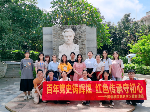 会议结束后,全体与会党员集体外出参观谭平山纪念公园。活动伊始,韩铙君同志对谭平山同志的生平事迹做了简要介绍。而陈韵桥也对其进行了补充:作为我们学校岭南师范学院前身的原校长,谭平山同志曾毕业于北京大学,是中国共产党早期党员和创始人之一,曾任中共中央执行委员,主持过国共合作事宜等一系列光荣事迹。她强调先进领袖就在我们身边,并激励全体同志在实际生活和工作中学习内化谭平山先生的优秀事迹和先进精神,时刻警醒自己如何更好地传承好红色基因。