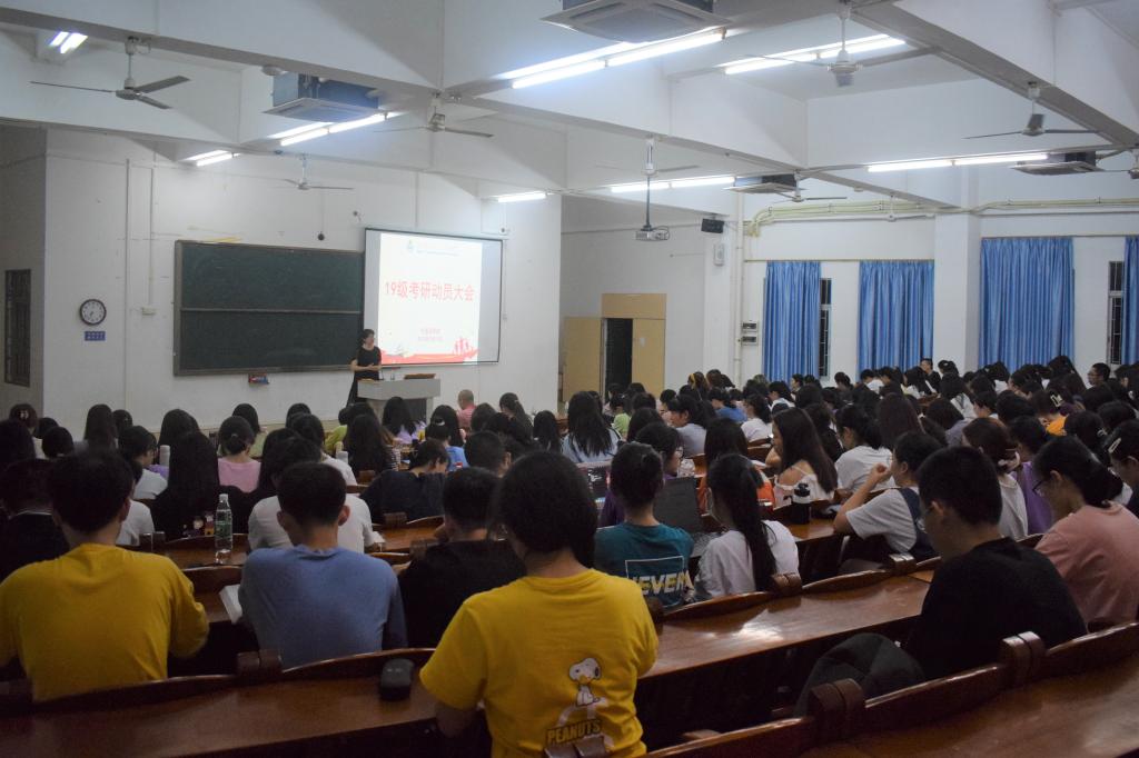 5月19日晚,外国语学院于教三611室召开2019级英语专业考研动员会。会议由外国语学院党委副书记杨建伟主持,主持行政全面工作的吴晓春副院长作动员讲话,17英语7班的陈施米、陈泳梅和17英语3班的陈采芬等同学作考研经验分享。